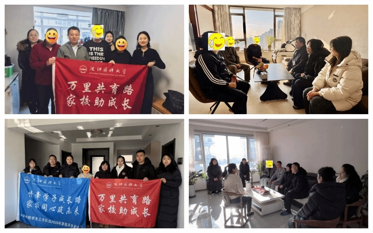 此次寒假家访活动是学校深化家校协同育人机制的重要实践,也是学校思想政治教育工作走深走实的具体体现。学校将持续完善家访长效机制,链接各方优质育人资源,为培养德才兼备、可堪大任的高素质药学人才保驾护航,让每一位沈药学子在成长路上都能收获温暖、明晰方向、扬帆远航。