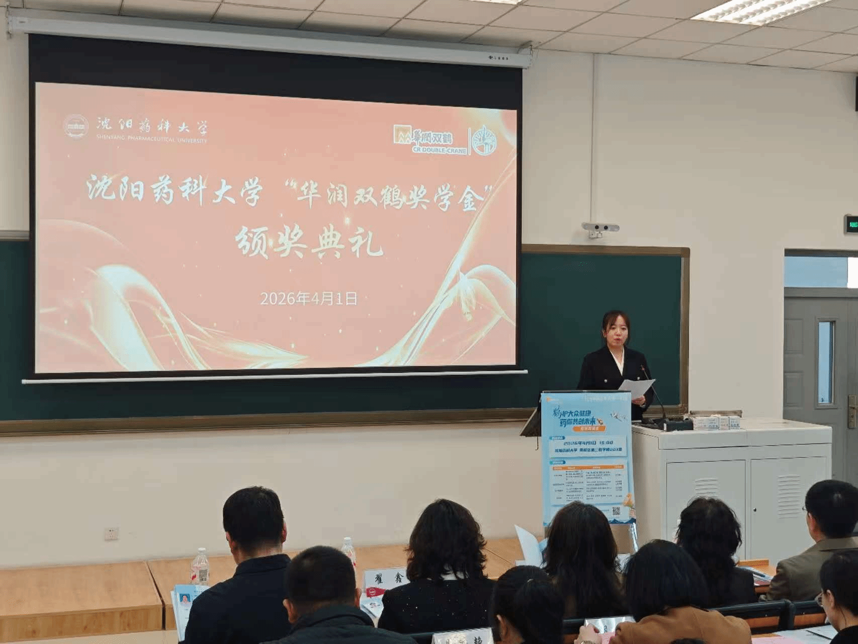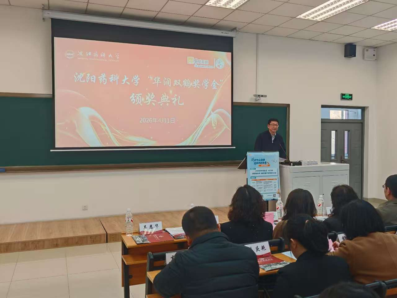 4月1日下午,沈阳药科大学2024-2025学年华润双鹤奖学金颁奖仪式在南校区第三教学楼203教室顺利举办,华润双鹤党委副书记姚东晗一行亲自莅临了本次颁奖现场。沈阳药科大学党委常委、副校长翟鑫、督察室主任、教育基金会理事长王辉、学生处处长吴恩华、研究生院副院长侯晶及各二级学院党委副书记出席了本次颁奖仪式,颁奖仪式由学生处副处长生阳主持。